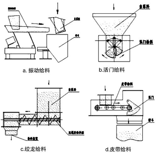 圖1 常用給料裝置工作原理示意